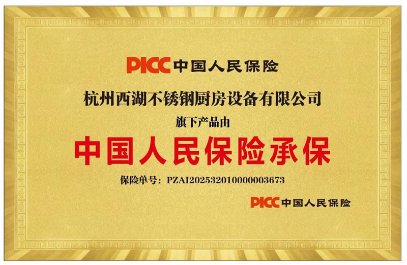 公司自2001年成立以來專注于商用廚房設備設計、開發、制造、銷售、安裝及服務于一體的專業廚房設備生產企業。經過 21 年的發展杭州西湖不銹鋼廚房設備有限公已經成為專業致力于廚房設備、餐飲設備、商超設備、烘焙設備等食品機械設備的生產、銷售、工程服務和技術咨詢為一體的綜合性公司,是浙江省科技型中小企業,同時我公司旗下產品由中國人民保險(PICC)承保(保險單號:PZAI202532010000003673)。